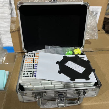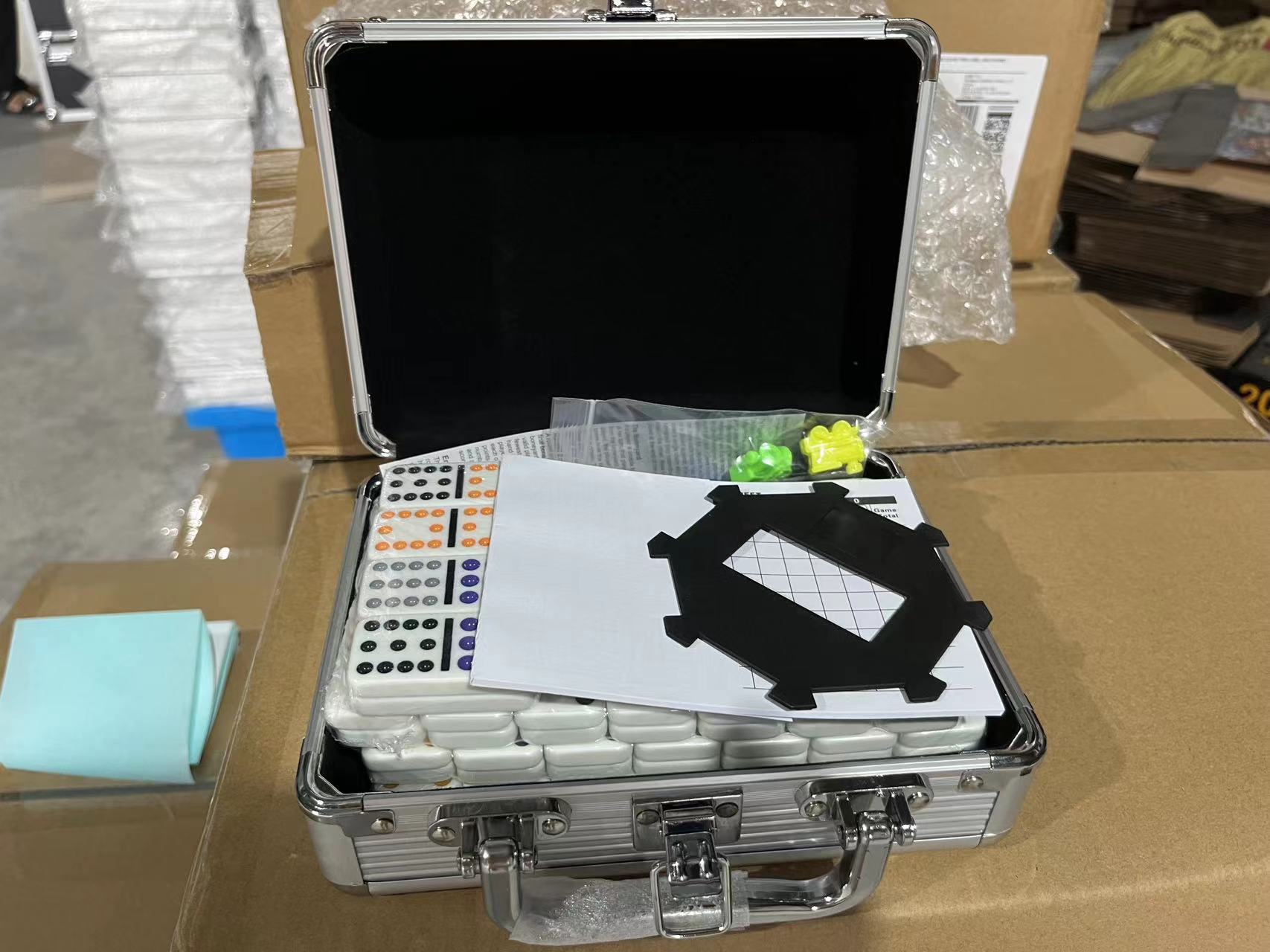 Aluminum Case Mexican Train Dominoes Set With Trains & Score Pads