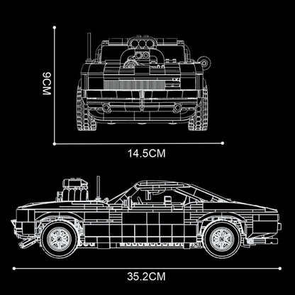 Black Muscle Car Brick Model with Supercharged Engine (1439 pcs)