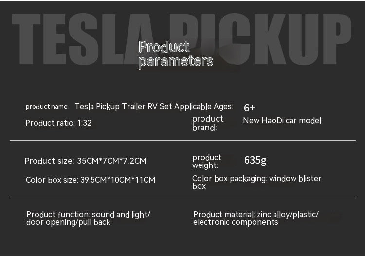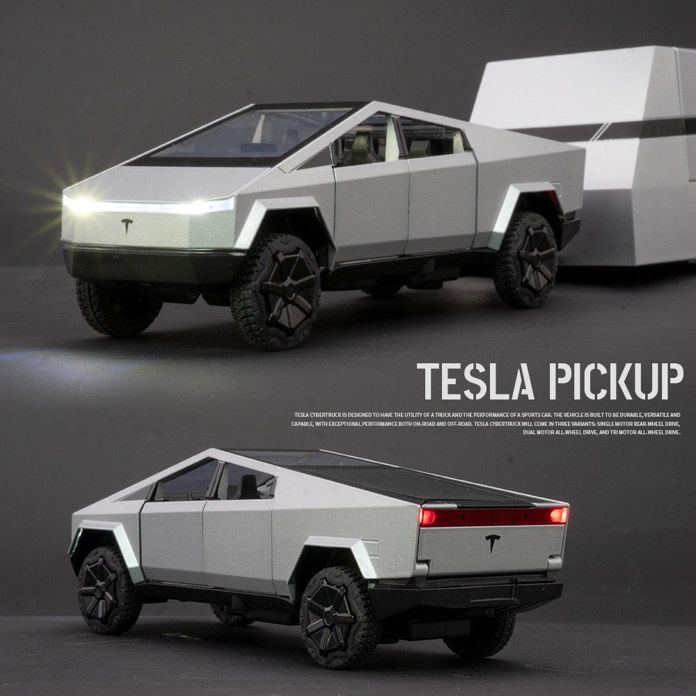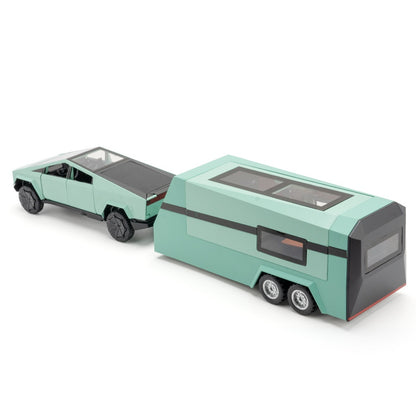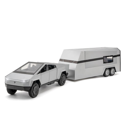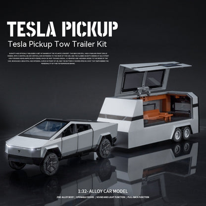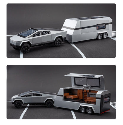 Cyber Pickup With RV Trailer – 1:32 Alloy Model With Lights