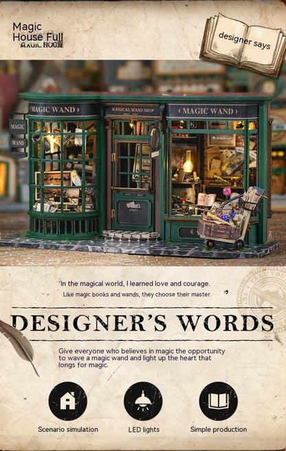 Charming “Magic Wand Shop” scene that enchants any shelf.