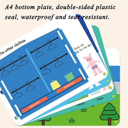 | Function | Quiet-book binder with reusable A4 activity pages: shapes & colors, counting, animals, vehicles, dressing, matching and logic games. | |