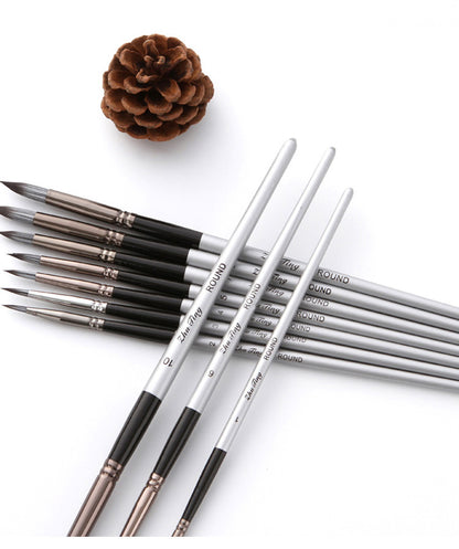 10-Piece Nylon Round Watercolor Brush Set with Wood Handles