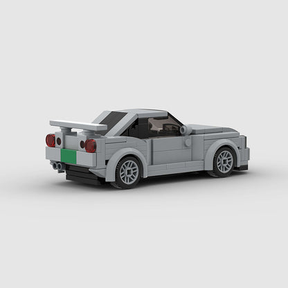 R34 Skyline-Style Compact Sports Car Building Blocks, Grey