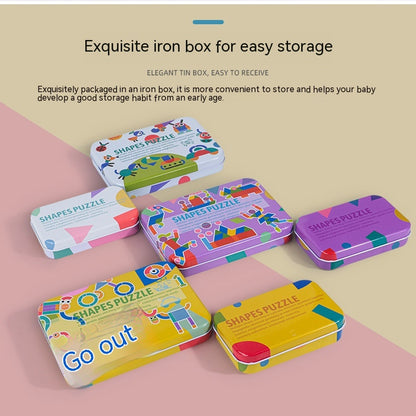 Shapes Puzzle Tin Set for Kids - Create With Color & Shape Cards