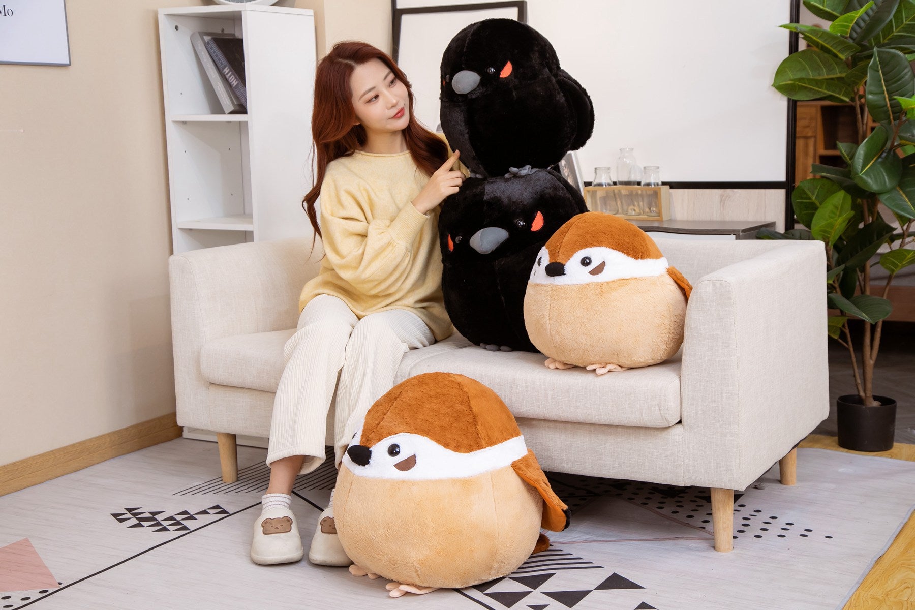 Cute Spherical Sparrow & Crow Plush Cushion Pillow (35/40 cm)