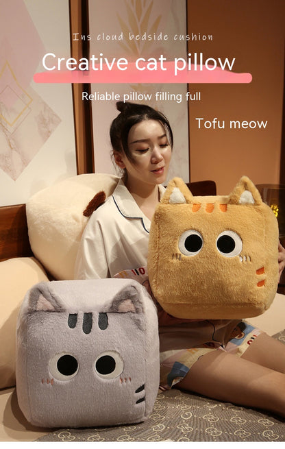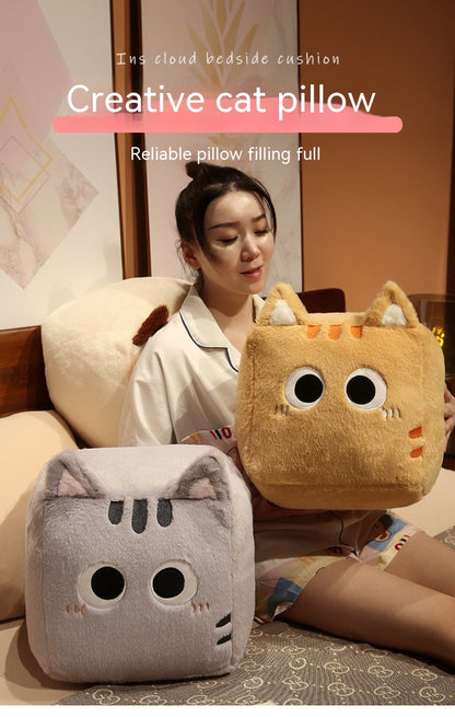 Square Cat Sleeping Pillow – Kawaii Plush Cushion (20/30/40 cm)