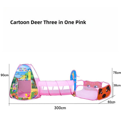| Dimensions | Tent ≈ 80 × 80 × 90 cm; Ball pool ≈ 60 × 60 × 38 cm; Tunnel ≈ 113 × 46 cm; Carry bag Ø ≈ 50 cm | |