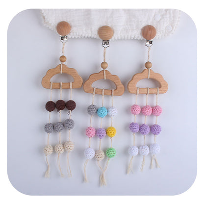 Wooden Cloud Baby Stroller Teether with Crochet Beads