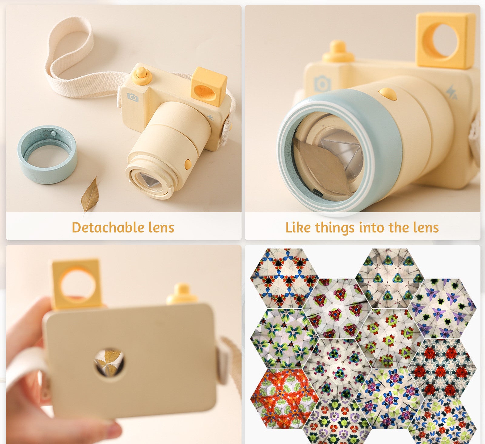 Wooden Kaleidoscope Camera Toy for Pretend Photography